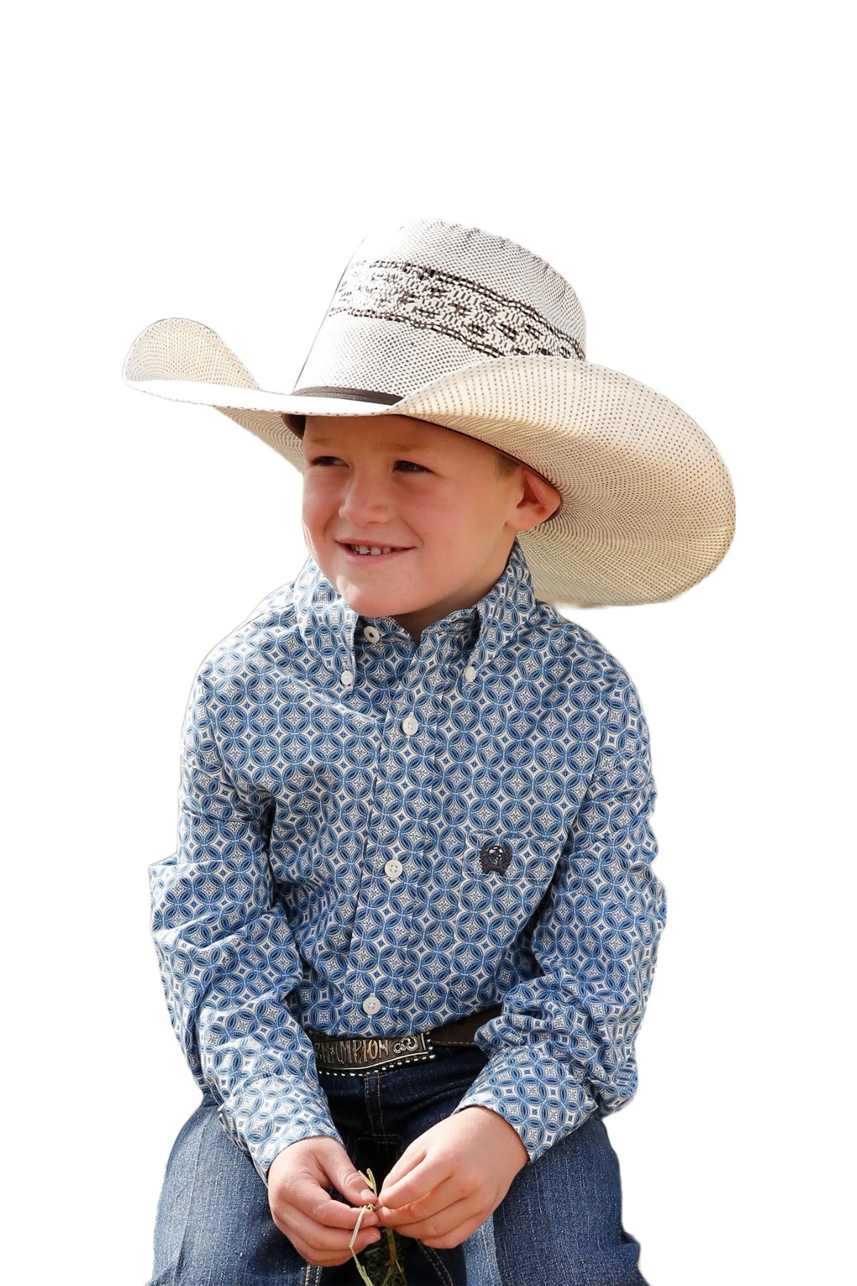 Cinch® Boy’s Geometric Patterned Light Blue Buttoned Down Shirt MTW7060307