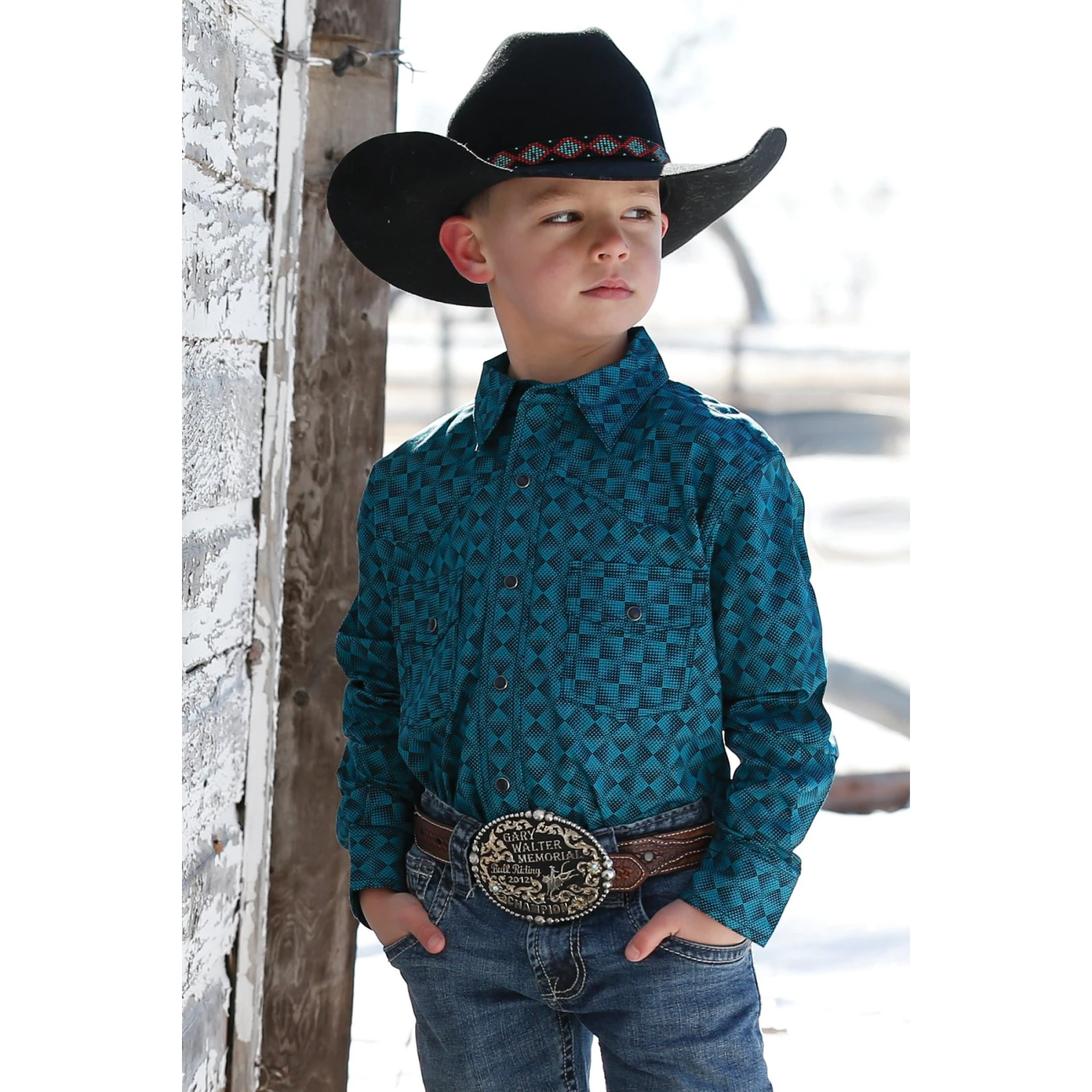 Cinch® Children’s Teal Plain Weave Print Snap Down Shirt MTW7020089