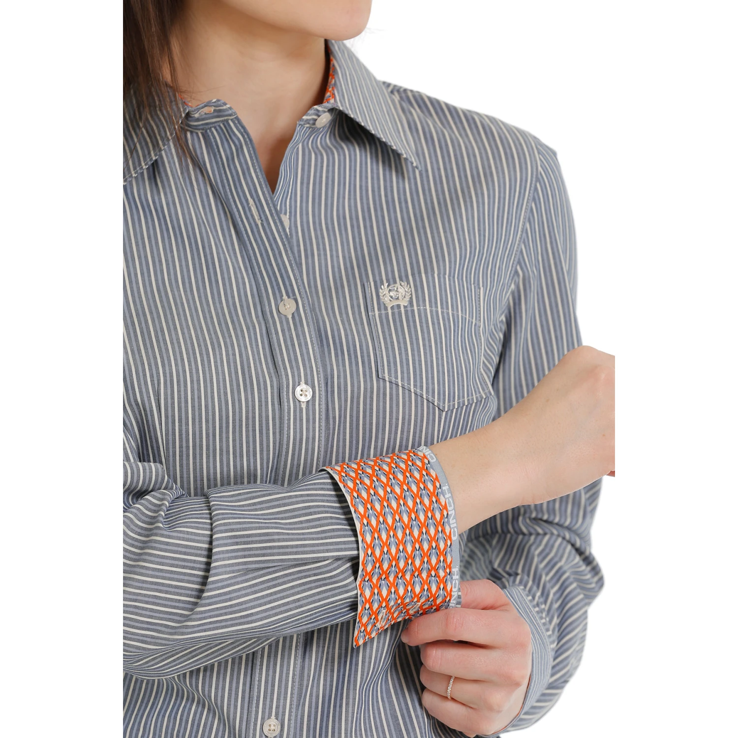 Cinch® Ladies Pinstripe Light Blue Button Down Shirt MSW9164196