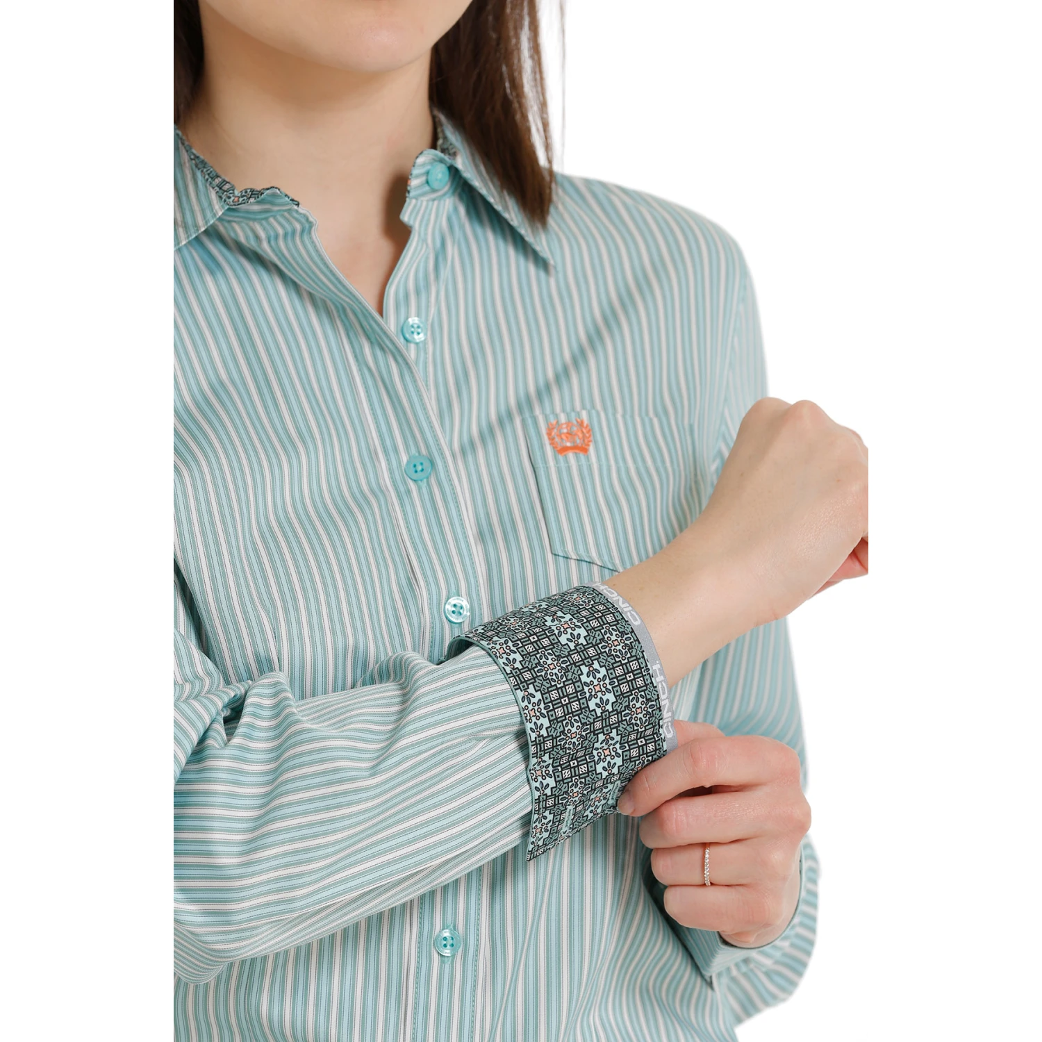Cinch® Ladies Striped Blue Tencel Button Down Western Shirt MSW9164198