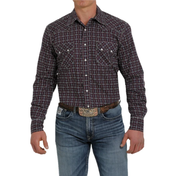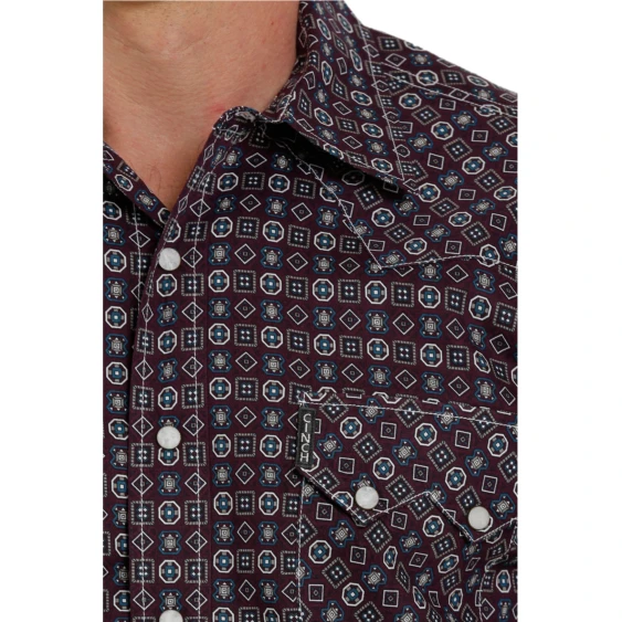 Cinch® Men’s Geo Shape Printed Purple Button Down Shirt MTW1301054