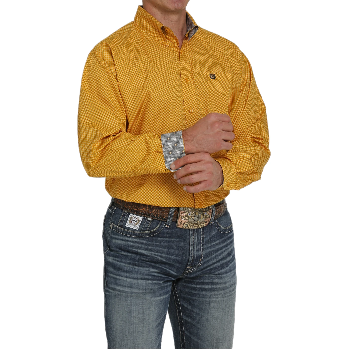 Cinch® Men’s Mini Geometric Print Gold Button Down Shirt MTW1105448