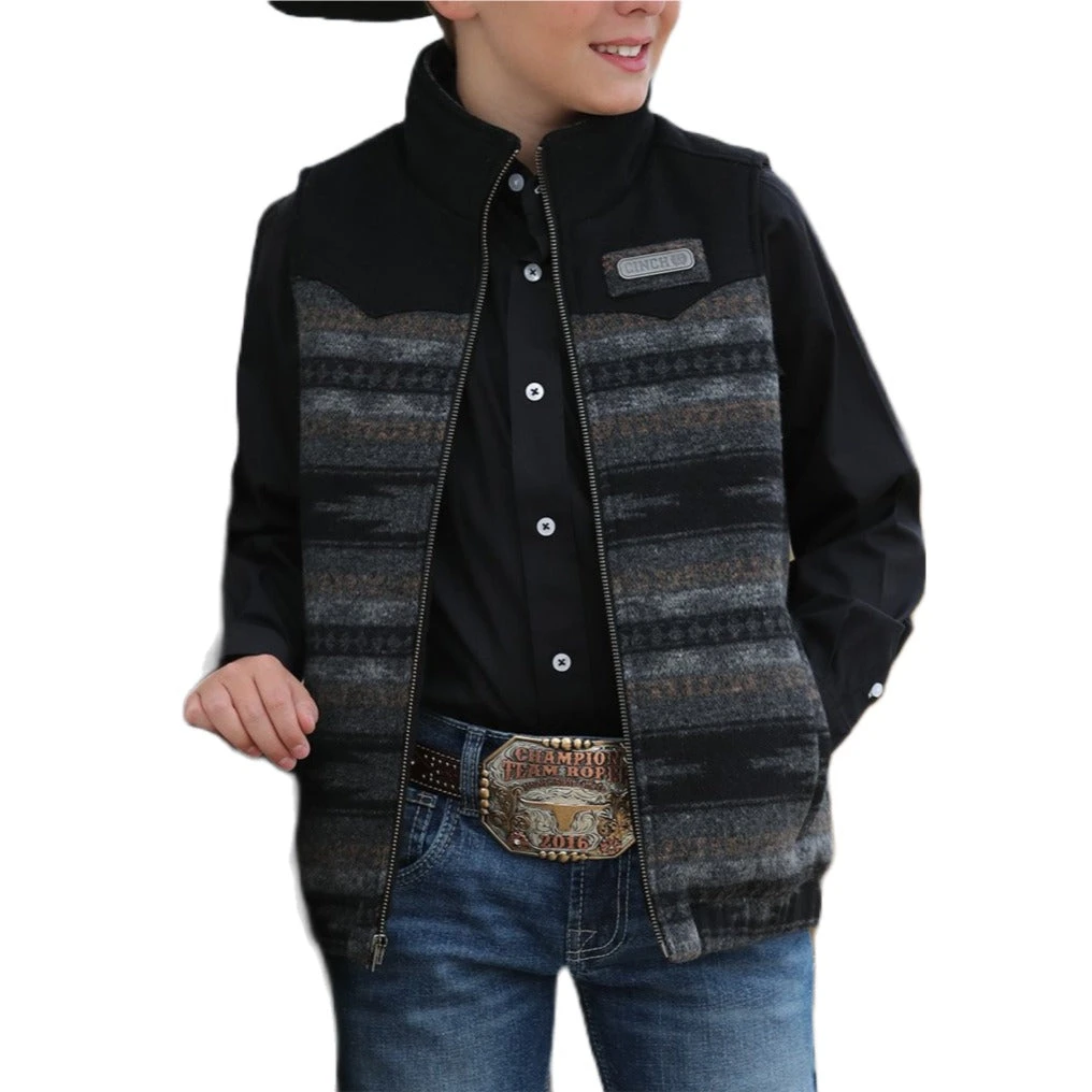Cinch® Youth Boy’s Black Blanket Stripe Printed Vest MWV5050002