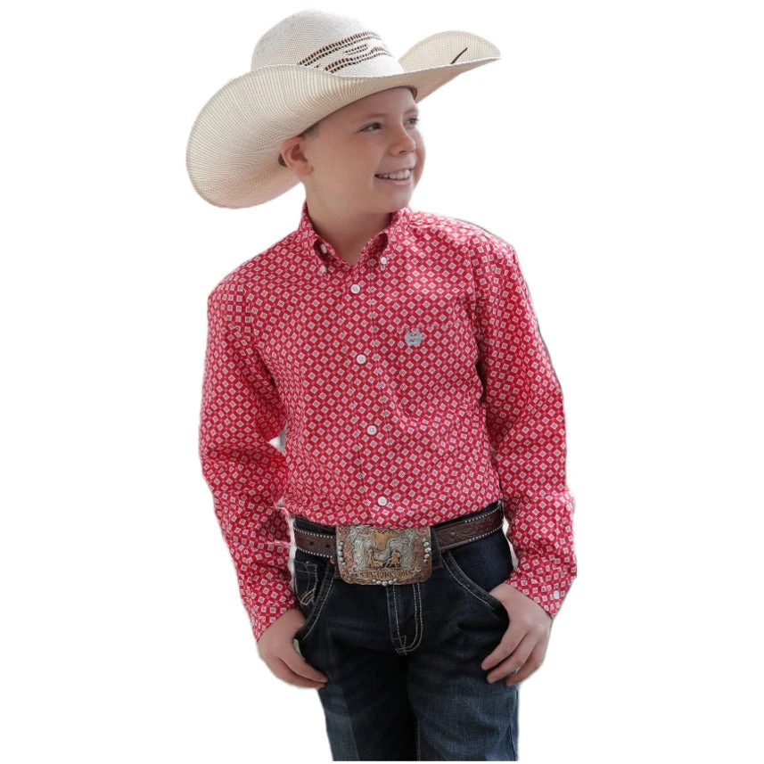 Cinch® Youth Boy’s Geometric Red Button Down Shirt MTW7060313