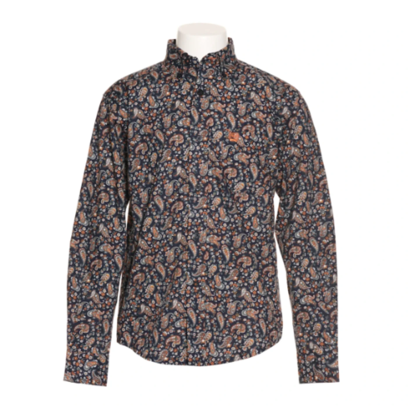 Cinch® Youth Boy’s Navy Paisley Printed Button Down Shirt MTW7060297